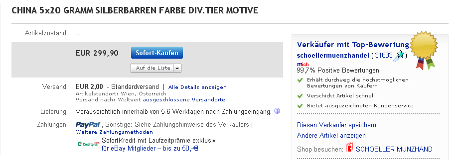 Ja....und dann noch Nennwert 50 Yuan als 1 Oz. Panda. ![]()