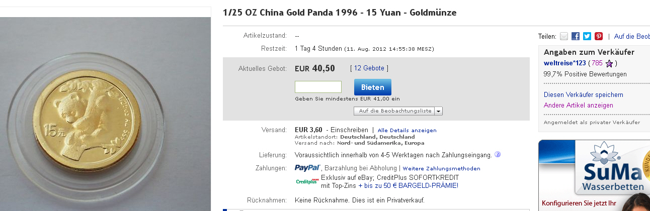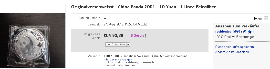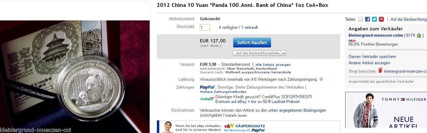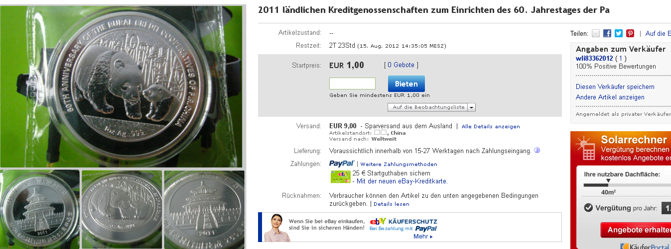 Sie sind bestimmt KEIN Panda-Sammler,denn dann würden Sie sofort sehen das diese Münze eine plumpe Fälschung ist.Siehe auch :