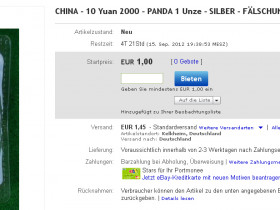 Mitgliedsname javafisch (privat) 10.06.12 09:11 10 Yuan China Panda 2000 (Nr.170851706608)EUR 206,88