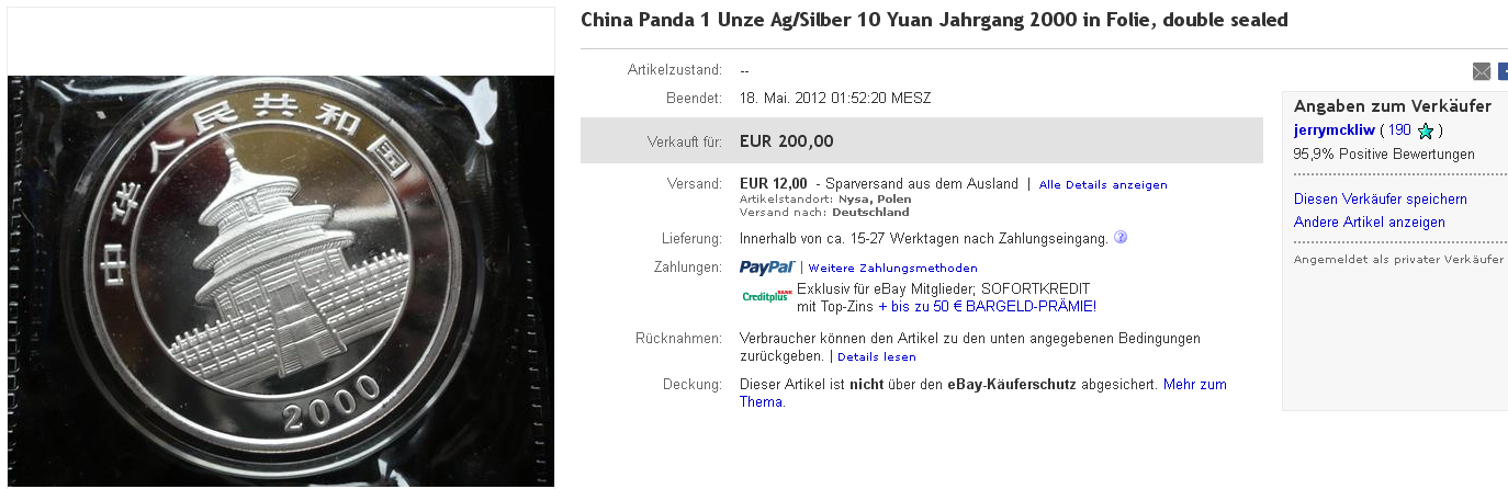 suchen, aber gefälschte, (none die weniger), China Silber Panda. Hier