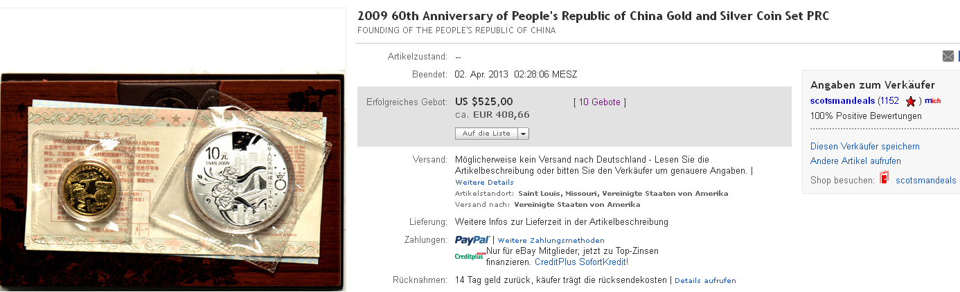 • Ergänzungskommentar von flinsel (02.04.13 14:16):NEGATIV!!! MÜNZE ist eine TOTALFÄLSCHUNG , WERTLOS !!!! ACHTUNG !!!