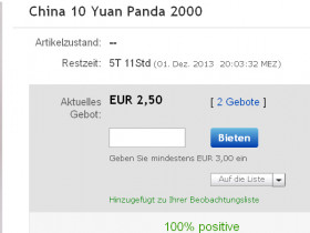 .***8 (privat) 19.11.13 19:56 2000 China Panda Münze 10 Yuan (Nr.181255784692)EUR 65,30Artikel aufrufen