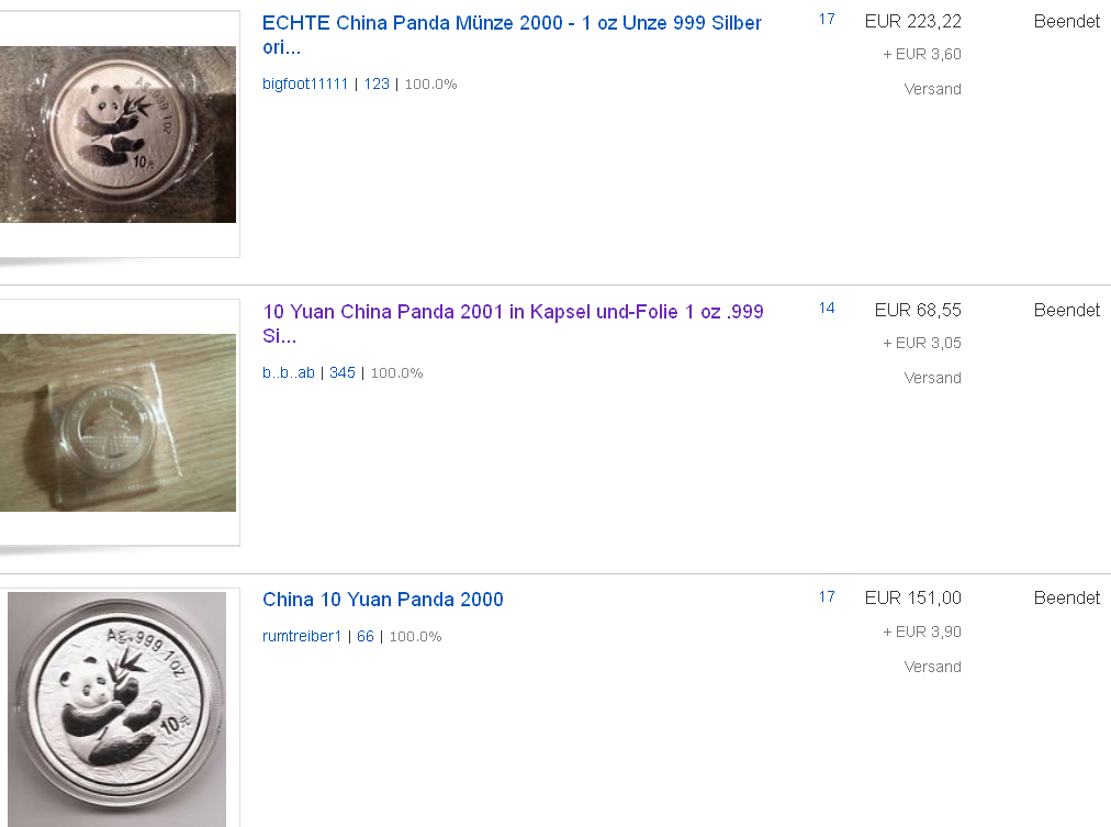Hi, ich bin noch nicht ganz so lange bei den EM käufern gebe mir aber recht viel mühe alles zu verstehen. Leider muß ich daher immer wieder für euch Saublöde fragen stellen. Ich kaufe Gold und Silber Münzen die mir von der Optik gefallen. Darunter auch die Panda. Eigentlich kaufe ich nur direkt bei Degussa/ PA oder in dem ein oder anderen Forum bei Membern mit guter Bewertung um ein hohes Risiko zu vermeiden.