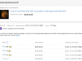 t***t ( 508[Blockierte Grafik: http://q.ebaystatic.com/aw/pic…/iconPurpleStar_25x25.gif]) 08.02.14 14:21 2000 China Panda Münze 10 Yuan (Nr.181282530568)EUR 21,50Artikel aufrufen -