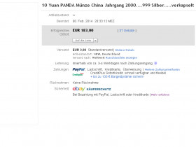b***y ( 168[Blockierte Grafik: http://q.ebaystatic.com/aw/pics/icon/iconTealStar_25x25.gif]) 19.06.13 20:15 CHINA PANDA 2000 10 YUAN FEINSILBER SELTEN (Nr.140993575824)EUR 150,00