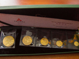 Sie bieten hier auf ein Set mit 5 Panda Münzen mit Verpackung und ein