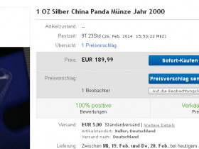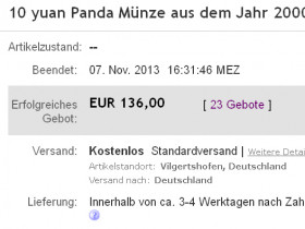 ich bins nochmal. Ich war heute beim Münzhändlerund habe ihn den Panda gezeigt, aber der hat nichts falsches entdecken können. Die Fahrt hätte ich mir sparen können. Bei Ebay wurde ein Fall geöffnet,der Verkäufer gibt anstandslos das Geld zurück, ich soll die Münze zurückschicken!