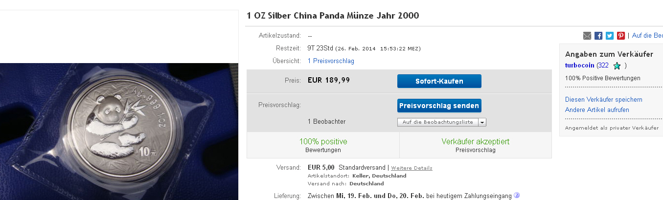Sie bieten hier auf eine China-Panda Münze aus dem Jahr 2000.