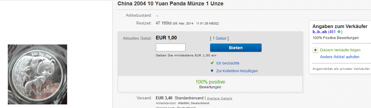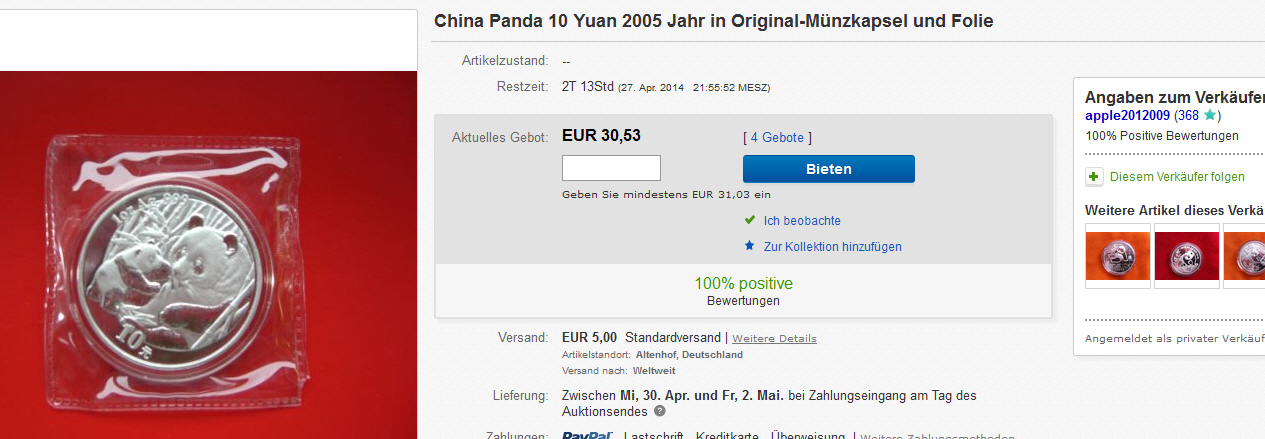 Ich habe die Münze gekauft von rambolinchen 123 und der verkauft weiter Panda Münzen. MFG XXXXX