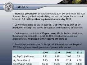 "... Silver grades ranged from 1,100 g/t (32 oz/t) to 30,468 g/t (889 oz/t) and gold grades ranged from 19 g/t (0.6 oz/t) to 177 g/t (5.2 oz/t) in 27 selective grab samples taken by the mine staff. These results yield an arithmetic average of 11,036 g/t (322 oz/t) Ag and 62 g/t Au (1.8 oz/t)....."