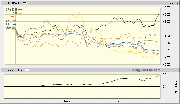 In diesem Zeitraum verloren die meisten Silberaktien vs Silber, relativ fester GPR + EXN.