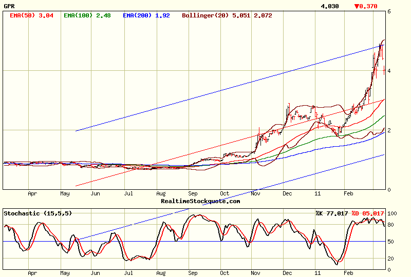 GPR's PR-Maschinery stemmt sich mit aller Macht gegen den allgemeinen Trend. Fast täglich kommen News. Ich denke aber, dass es nach einem Ritt von 1,40 auf 3,70 Euro in wenigen Wochen Zeit für eine deutliche Verschnaufpause ist. Insofern würde es mich nicht wundern, wenn hier mindestens 50% des Anstieges korrigiert würden ... das entspräche Kursen von mindestens 2,55 Euro. Wir werden sehen.
