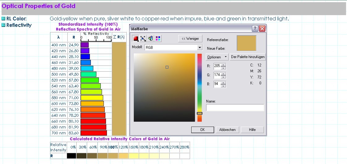 Was dabei nicht berücksichtigt wurde, ist die Möglichkeit, dass Chrom evtl. eine im Blaubereich stärkere Reflexion als Palladium aufweisen könnte (siehe Trendlinie in der letzten Grafik dieses Postings, unten).