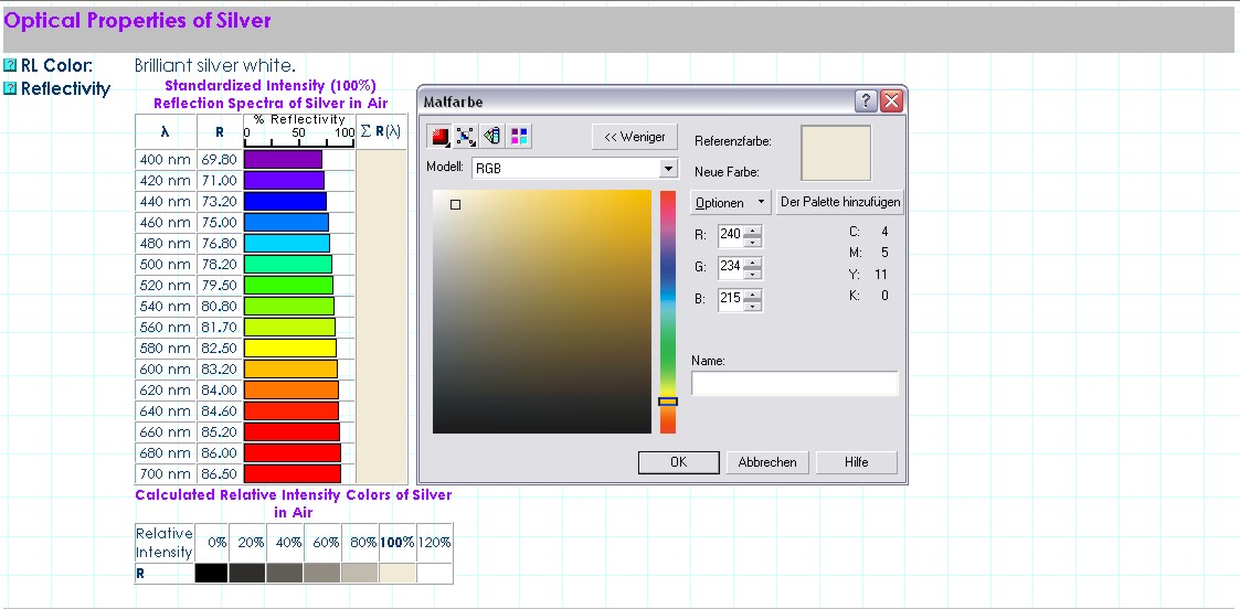 Was dabei nicht berücksichtigt wurde, ist die Möglichkeit, dass Chrom evtl. eine im Blaubereich stärkere Reflexion als Palladium aufweisen könnte (siehe Trendlinie in der letzten Grafik dieses Postings, unten).