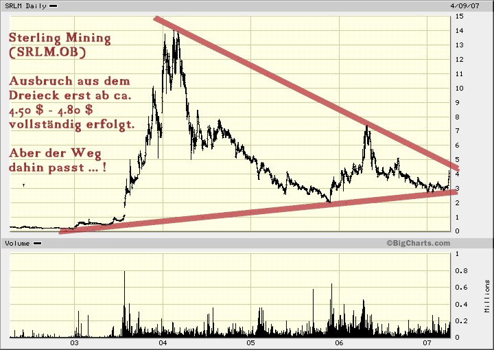 Mir scheinen da die Kursrisiken - abgesehen davon - auch deutlich höher zu sein, als bei der Sterling Mining.