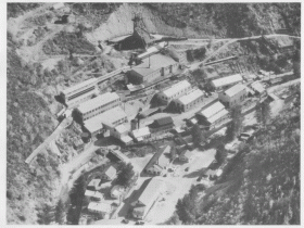 Es ist eine Luftaufnahme mit Text dazu aus dem Buch "The Coeur D'Alene Mining District", 1948, von E.D. Scamahorn.