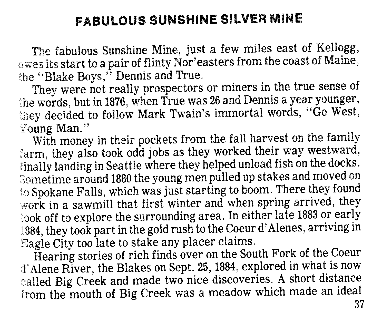 Er ist aus dem Buch "Golden History Tales - From Idaho's Coeur D'alene Mining District, - Wendell Brainard, Ray Chapman, April 1990, Crows Printing, Wallace, Idaho" das ich ebenfalls sehr empfehlen kann.