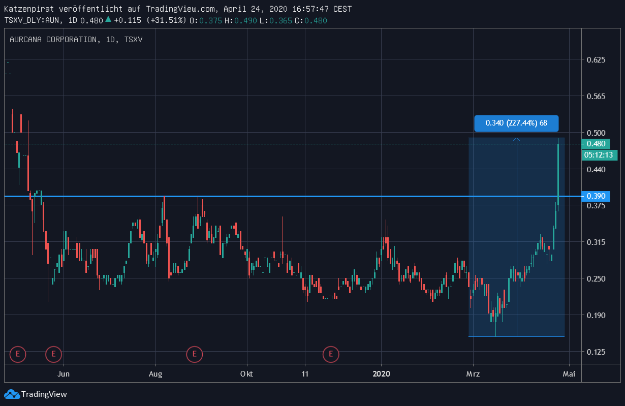 VANCOUVER, 13. Februar 2020 - Aurcana Corp. ("Aurcana" oder das "Unternehmen") (TSXV: AUN) freut sich, vorbehaltlich der Genehmigung durch die TSX Venture Exchange, ein nicht vermitteltes Privatplatzierungsangebot (die "Privatplatzierung") von bis zu 18.181.818 Einheiten (4.000.000 C$) zu einem Preis von 0,22 C$ pro Einheit (die "Einheiten") bekannt zu geben.Jede Einheit besteht aus einer Stammaktie des Unternehmens und einem vollständigen Stammaktien-Kaufwarrant ("Warrant"), wobei jeder Warrant seinen Inhaber berechtigt, innerhalb eines Zeitraums von 36 Monaten nach Abschluss der Privatplatzierung eine Stammaktie zu einem Preis von 0,375 C$ zu erwerben, vorbehaltlich einer Anpassung bei bestimmten üblichen Ereignissen.Der Nettoerlös der Privatplatzierung wird für die weitere Umsetzung der Unternehmensvision des Unternehmens verwendet, die bereits am 19. Juni 2019 angekündigt und auf der Website http://www.aurcana.com veröffentlicht wurde und die sich in erster Linie auf die Förderung seiner zu 100 % unternehmenseigenen Revenue-Virginius-Silbermine in Ouray, Colorado, sowie auf das Betriebskapital und die allgemeinen und administrativen Kosten konzentriert.Findergebühren an Dritte können unter bestimmten Umständen als Teil der Privatplatzierung gezahlt werden.Gemäß dem Multilateralen Instrument 61-101 - Schutz von Minderheitsaktionären bei Sondertransaktionen ("MI 61-101") stellt die Privatplatzierung eine "Transaktion mit verbundenen Parteien" dar, da von Insidern des Unternehmens erwartet wird, dass sie Einheiten zeichnen. Diese Transaktionen sind von den formalen Bewertungs- und Genehmigungsanforderungen des MI 61-101 ausgenommen, da der faire Marktwert der von Insidern im Rahmen der Privatplatzierung gezeichneten Einheiten 25% der Marktkapitalisierung des Unternehmens nicht überschreiten wird.Die Anteile werden auf der Grundlage einer Privatplatzierung gemäß den geltenden Ausnahmen von den Prospektanforderungen gemäß den geltenden Wertpapiergesetzen ausgegeben. Die Stammaktien und Warrants (und alle Stammaktien, die gemäß den Warrants ausgegeben werden, sofern anwendbar) unterliegen einer gesetzlichen Haltefrist von vier Monaten und einem Tag ab dem Datum der Ausgabe der Einheiten.Diese Pressemitteilung stellt weder ein Angebot zum Verkauf oder die Aufforderung zur Abgabe eines Angebots zum Kauf der Wertpapiere in den Vereinigten Staaten dar, noch soll es einen Verkauf der Wertpapiere in einer Rechtsordnung geben, in der ein solches Angebot, eine solche Aufforderung oder ein solcher Verkauf ungesetzlich wäre. Die Wertpapiere wurden und werden nicht nach dem United States Securities Act von 1933 in der jeweils gültigen Fassung (das "Gesetz von 1933") oder nach den Wertpapiergesetzen der einzelnen Bundesstaaten registriert und dürfen in den Vereinigten Staaten nur dann angeboten oder verkauft werden, wenn sie nach dem Gesetz von 1933 und den anwendbaren Wertpapiergesetzen eines Bundesstaates der Vereinigten Staaten registriert sind oder eine entsprechende Ausnahme von den Registrierungsanforderungen vorliegt.ÜBER AURCANA CORPORATIONAurcana Corp. besitzt die Revenue-Virginius-Mine in Colorado und das Shafter-Presidio-Silberprojekt in Texas, USA. Die Hauptressource bei Shafter und Revenue-Virginius ist Silber. Beide sind vollständig für die Produktion zugelassen.IM HALBEN DES VERWALTUNGSRATS DER Aurcana Corp."Kevin Drover"Präsident und CEO