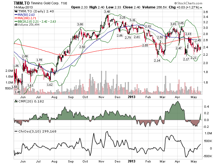 „..."As for Timmins Gold Corp., I believe this is a pivotal year. It is working toward increasing gold production from about 95 Koz in 2012 to 130 Koz in 2013, while reducing cash costs through several different initiatives....“