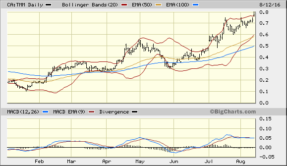 Wollte schon gestern TMM mit seinem 12 Monatshoch loben, jetzt lohnt es: Momentan weitere + 13 % auf 0,68 C$. [smilie_blume]
