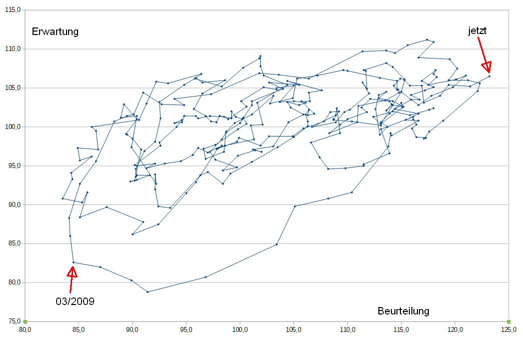Man sollte aber beachten, dass der große Aufwärtstrend 2007 gebrochen wurde und nicht mehr intakt ist.