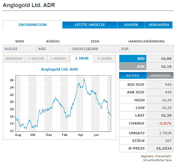 Am Freitag mit Zahlen. In Brasilien scheint bei Anglogold derzeit etwas Sand im Getriebe. Mal abwarten bis das komplette Zahlenwerk vorliegt. -