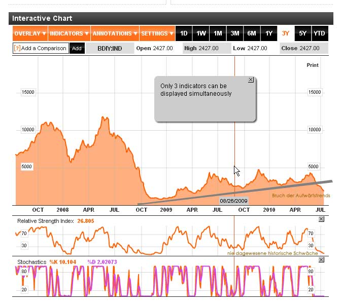 ein kurzer Blick: der Baltic Dry index chart sieht böse aus: die hoch werden immer niedriger, die Tiefs immer niedriger