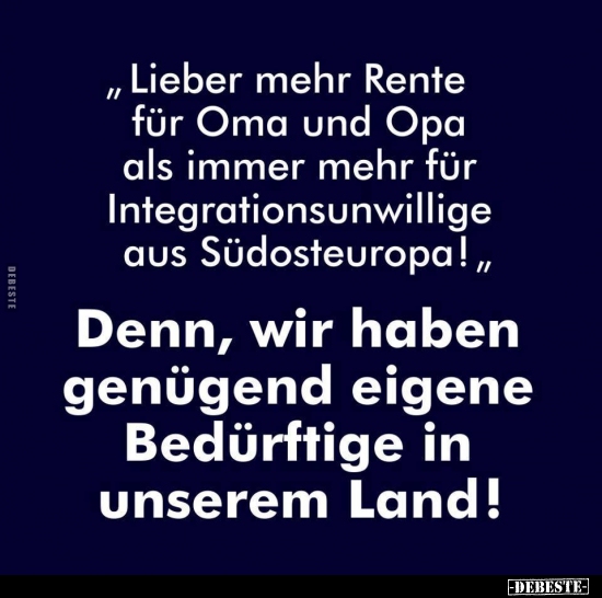 Absolut richtig, darum bin ich der Meinung das der Staat gegenüber SEINEN Bürgern eine Bringschuld hat, Deutschland den Deutschen.