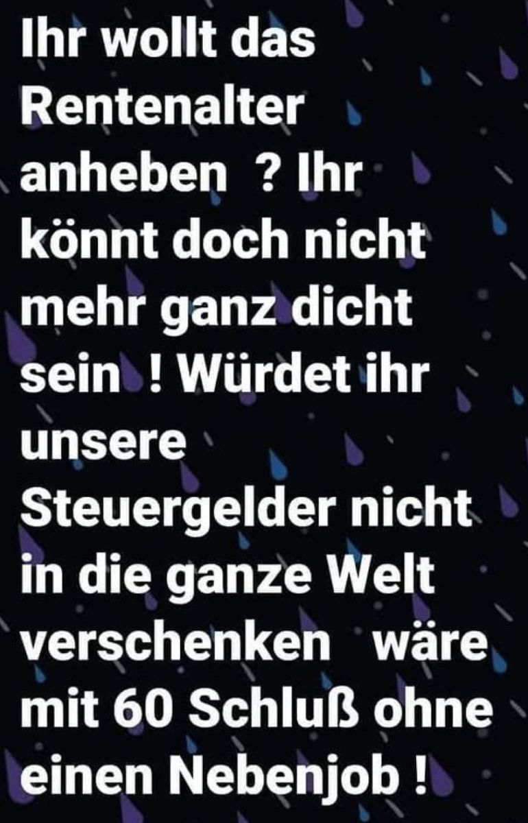 Von den ganzen zweckentfremdeten Leistungen, welche die RV tragen muss, wie Mütterrente, Rente für Bürgergeldempfänger, jüdischen Staatsbürgern etc. fange ich erst gar nicht an.