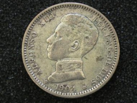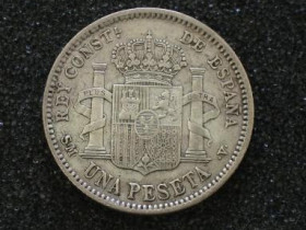 Die Pesete und Mark sind nur Silberwert im abgebildeten Zustand.