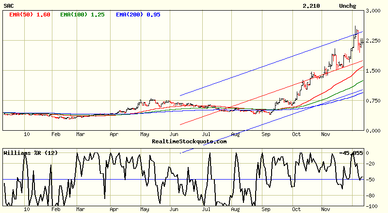 SAC durchläuft derzeit eine Korrektur. Seit einem großen Teilverkauf am 23.12. zu 2,30 C$ ist SAC Depot Freiläufer, spätere Wiederaufstockung ist wahrscheinlich.