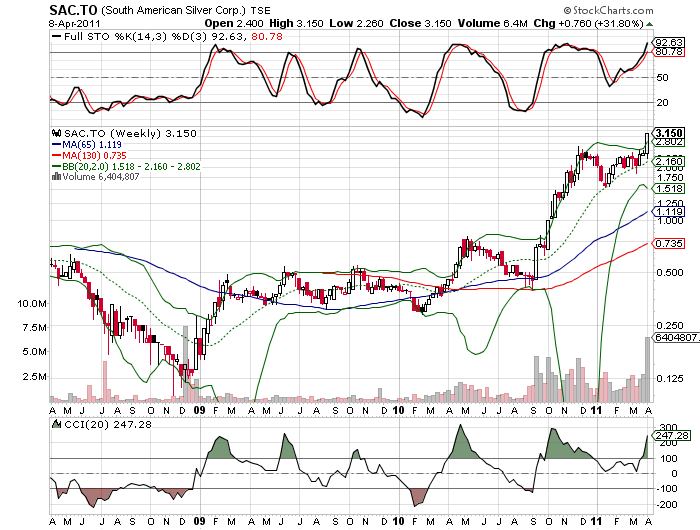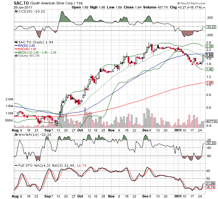 "...On a good run stretching back to late last summer when they were trading at $.49, South American Silver has a great looking stock chart, and a successful plan in Bolivia to stick to. With one of the largest undeveloped Silver and Indium deposits in the world at their Malkhu Kota project, it's hard to ignore their 177.8 million ounces of inferred silver resource assessment. It's a large project with an added dose of the versatile indium to sell as well, and is reasonably accessible (within 15kms of power and accessible by road). Discussions with the locals and involved parties during January was promising, with the company announcing no hang-ups or problems foreseen. The project is sticking to the timeline originally plotted, while an update should be in the works soon. With smooth interactions with the locals going on, the risk of doing business in Bolivia seems to be mitigated for the time being, and South American Silver is reaping the benefits of their development work so far...."