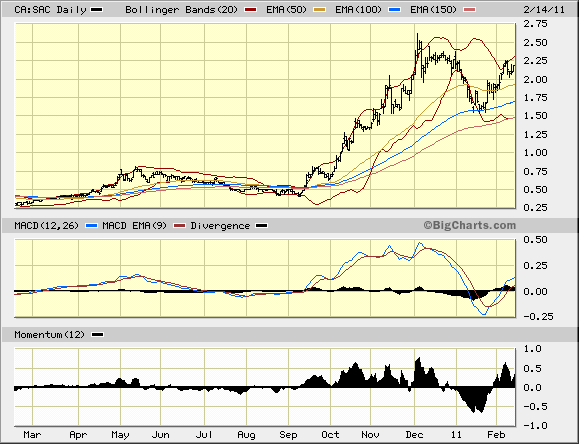 SAC durchläuft derzeit eine Korrektur. Seit einem großen Teilverkauf am 23.12. zu 2,30 C$ ist SAC Depot Freiläufer, spätere Wiederaufstockung ist wahrscheinlich.