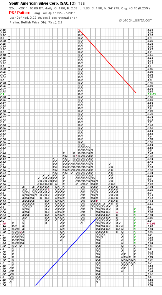 Hier hatte ich am 4.06.den letzten P&F Chart hereingestellt: South American Silver / SAC (TSX)