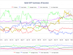 Hier sehen wir dass die Produzenten + Swap Dealer schon in etwa das Niveau wie in Juni 2020 erreicht haben, bei Kursen um 1800 herum, also Dienstag. MM weiter schwach.