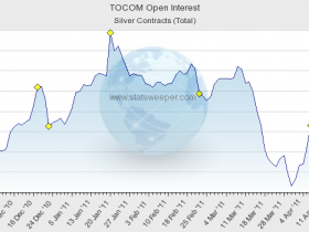 Das Open Interest ist seit September 2010 aber dauerhaft um eine (oder mehrere) Ebenen nach oben geklettert. Da das OI an der Comex eher am sinken ist, kann man sagen, dass der Einfluss der Comex deutlich am sinken ist.