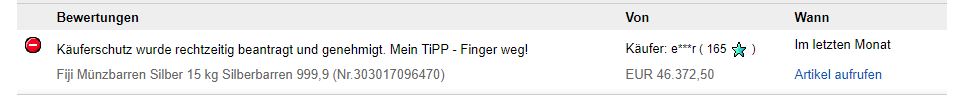 • Am 15.12.2019 weist man darauf hin, dass man bis 3.10.2019 noch mit Inventurarbeiten beschäftigt sei... hmmmm macht mich stutzig....kann doch nicht so lange dauern, die paar Münzen zu zählen... in Ebay ist die negative Bewertung des Kunden, der wegen eines Kaufes von über 40.000 Euro den Käuferschutz eingeschaltet haben will, immer noch ersichtlich, hmmmmm ....