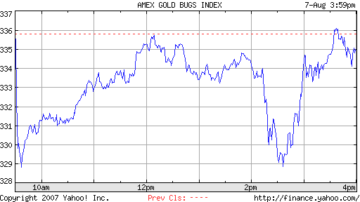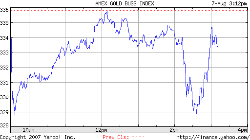 Ist schon sehr offensichtlich, wie der HUI die letzten beiden Handelstage jeweils in den ersten Minuten gehämmert wurde.