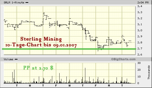Sterling President Ray DeMotte said the company has had no difficulty attracting experienced hands back to the Sunshine. "We are bringing back to the Sunshine many bright people who left the Silver Valley during the price depression of the 1980s and 1990s, and they're glad to be coming home," DeMotte said. Sterling's complement of 30 will increase toward year-end 2007, as the silver mine, which produced more than 300 million ounces between 1884 and 2002, returns to production late in '07 or early in 2008. Sterling bootstrapped off the Pink Sheets earlier this year to become a fully reporting company – no mean feat for an outfit over 100 years old.
