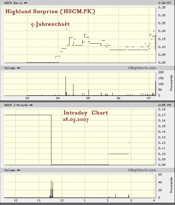 * Bei Highland Surprise Mining (HSCM), die vom Bunker Hill Gelände eingeschlossen ist, liefen gestern knapp 5% der Gesamtaktien über den Ladentisch!!