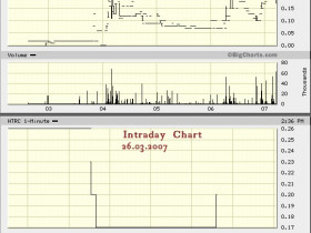 * Azteca Gold Corp. (CA:AZG) ging den zweiten Tag nach Freitag explosiv unter einigermassen hohem Volumen weiter rauf, da hat sich dann aber der Handel, wie es Tschonko richtig bemerkt hat, intraday ausgedünnt & die Kurse kamen wieder etwas zurück.