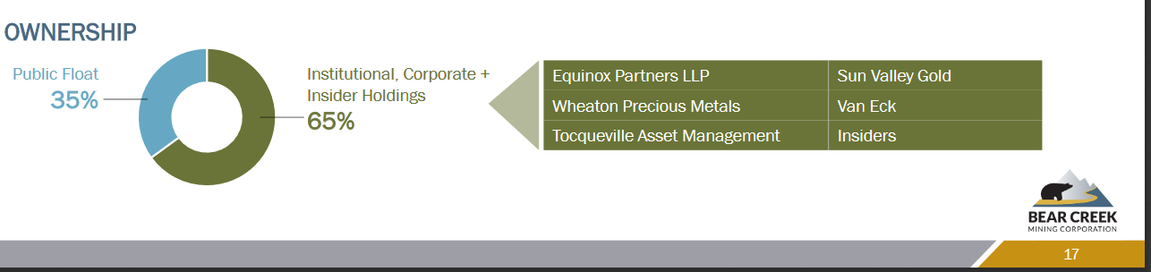 ja BMC ist interessant. Die aktuellste Präsentation September 2018 zeigt die Abhängigkeit des Wertes von den Preisen für Silber/Blei und Zink. Hoher Anteil von Institutionen.