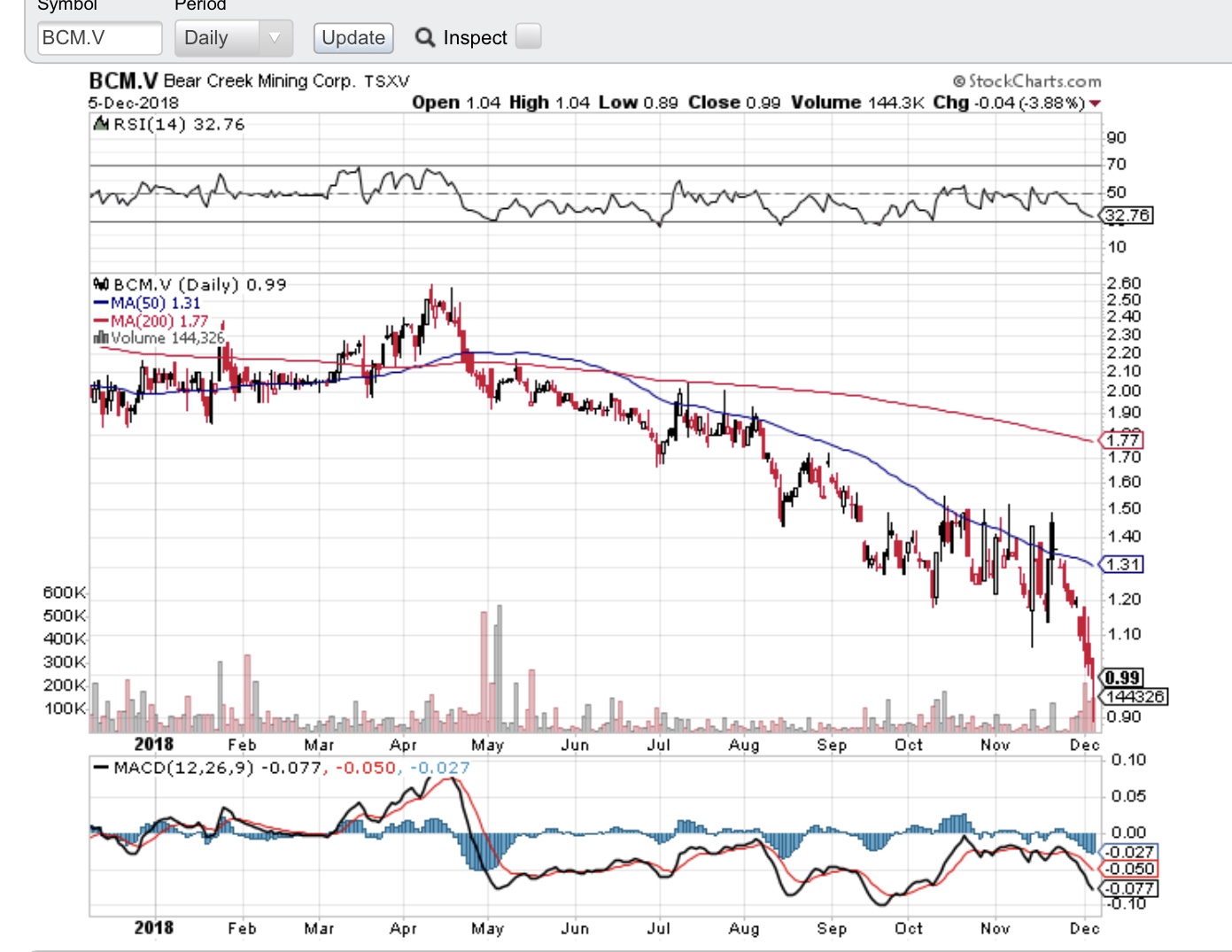 Bear Creek Mining (BCEKF, BCM.V): The company controls 100% of the Corani silver-lead-zinc project, located in the Puno region of southern Peru. The project is approximately 160 km southeast of Cusco and consists of twelve mineral concessions that form a contiguous block of ground covering approximately 5,700 hectares. Corani boasts current reserves which will support average annual production of 8M ounces of silver and 150M pounds combined lead and zinc over an 18-year mine life.