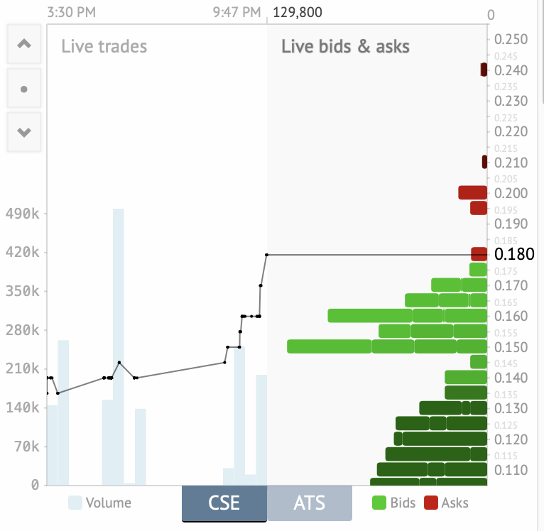 Das aktuelle Orderbuch in Toronto zeigt ein volles Ask und ein leergefegtes Bid. ![]()