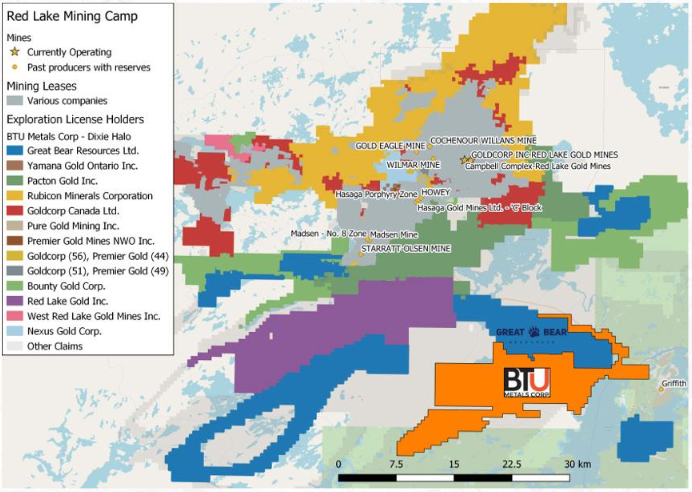 • Barrick Gold schließt JV Verträge mit Red Lake Gold und Dixie Gold und verleibt sich 70% für Explorationstätigkeiten ein, um nördlich und westlich von der Liegenschaft von Great Bear Ressources auf Gold suche zu gehen.