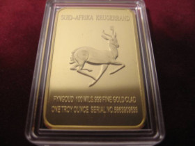 Gibt es als 5g, 10g, Unze ('troy ounce'), 50g-barren mit verschiedenen Motiven (Maple Leaf wie das Original, Springbock wie auf dem Krüger)