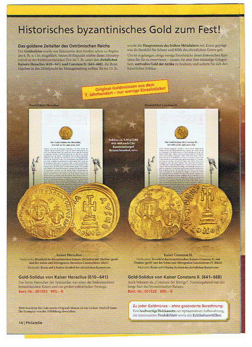 Die angebotenen Solidi war glaube ich die erste im grösseren Stil verbreitete Goldmünze die auch sehr lange im Umlauf war und das Wort 'solid' mit beeinflusst hat