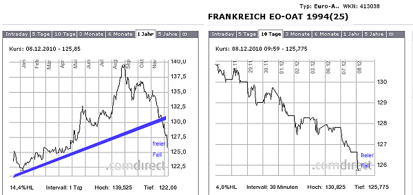 Obwohl Fed Staatsanleihen kauft - sinkt der Wert der Anleihen.