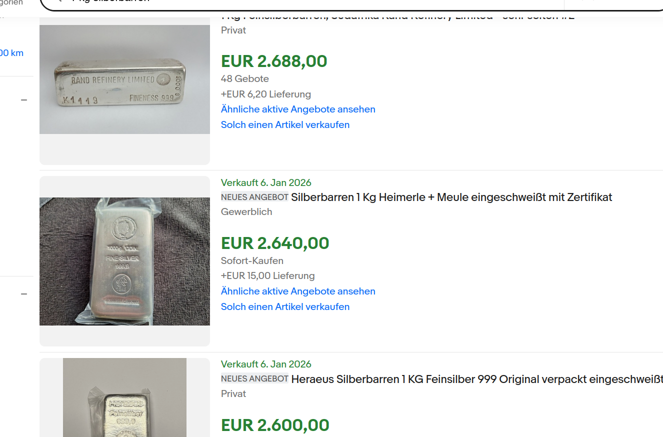 1 kg Silberbarren werden aktuell auf ebay viele angeboten und auch gekauft.