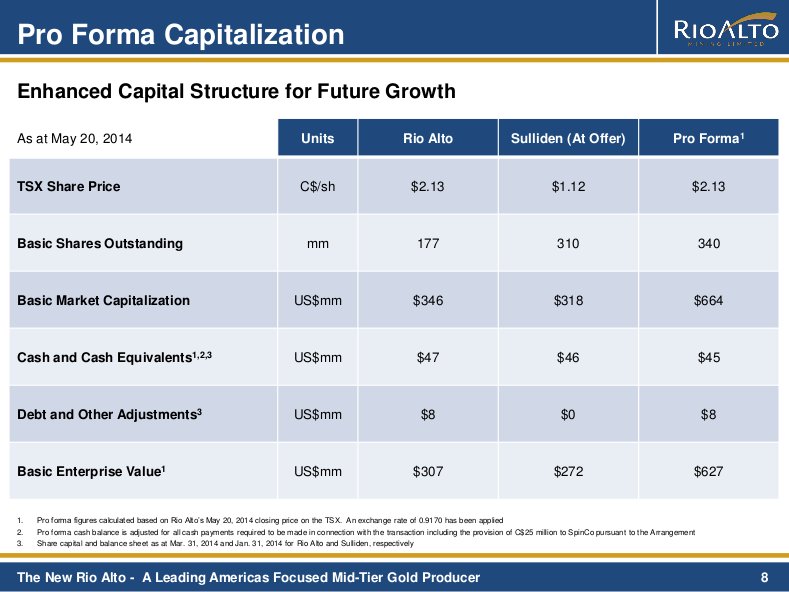 „..A couple of weeks ago, Rio Alto Mining Ltd. (RIO:TSX.V; RIO:BVL) bought Sulliden Gold Corp. (SUE:TSX; SDDDF: OTCQX; SUE:BVL). That's a great deal for Rio Alto, which is currently mining an oxide-gold deposit in Peru. By acquiring Sulliden, Rio Alto gets another Peruvian deposit that is very similar geologically and metallurgically, so it shouldn't be too big an issue to bring it into production. The timing works well because the Sulliden deposit should pick up just when Rio Alto's La Arena deposit starts to decline. Rio Alto knows how to work in Peru, and it seems to have the social issues under control. The synergies work really well when a company that knows what it is doing buys a deposit that fits right in with what it's up to....“